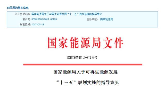 7月28日,国家能源局在其官网发布《关于可再生能源发展“十三五”规划实施的指导意见》,旨在有效解决可再生能源发展中出现的弃水弃风弃光和补贴资金不足等问题,实现可再生能源产业持续健康有序发展。