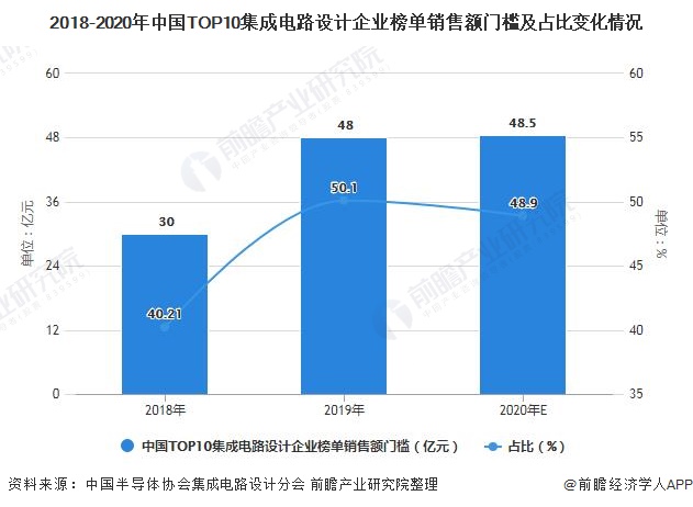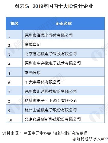 根据中国半导体电竞赛事竞猜平台集成电路设计分会2019年11月公布的《2019年中国十大芯片设计厂商(未统计港澳台地区)的营收数据预测报告》显示,2019年中国前十大集成电路设计企业的总销售约1558.0亿元,占全行业产业规模比例的50.1%,而2018年同期为40.21%。